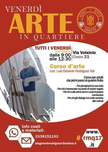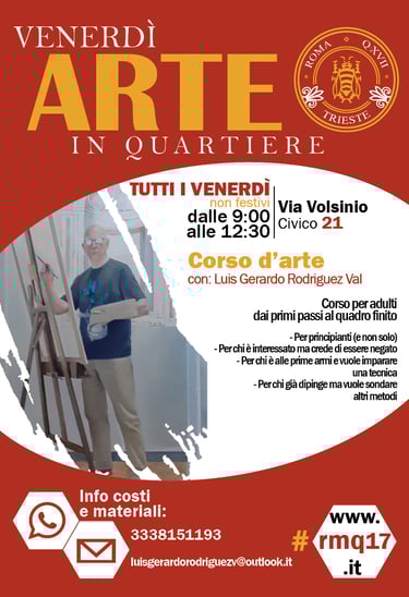 Tutti i Venerdì CORSO D'ARTE realizzato da Luis Gerardo Rodriguez Val, il curatore delle nostre mostre. Adatto a chi vuole imparare, a chi si ritiene negato e a chi vuole sperimentare.