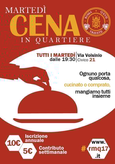 Tutti i martedì "ognuno porta qualcosa e si mangia tutti insieme". Cucinato o comprato, Una scusa per stare insieme e conoscere nuove persone.