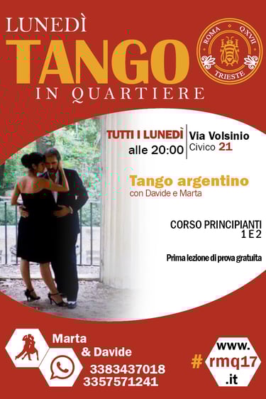 Tutti i Lunedì Corso di Tango argentino per principianti e non.